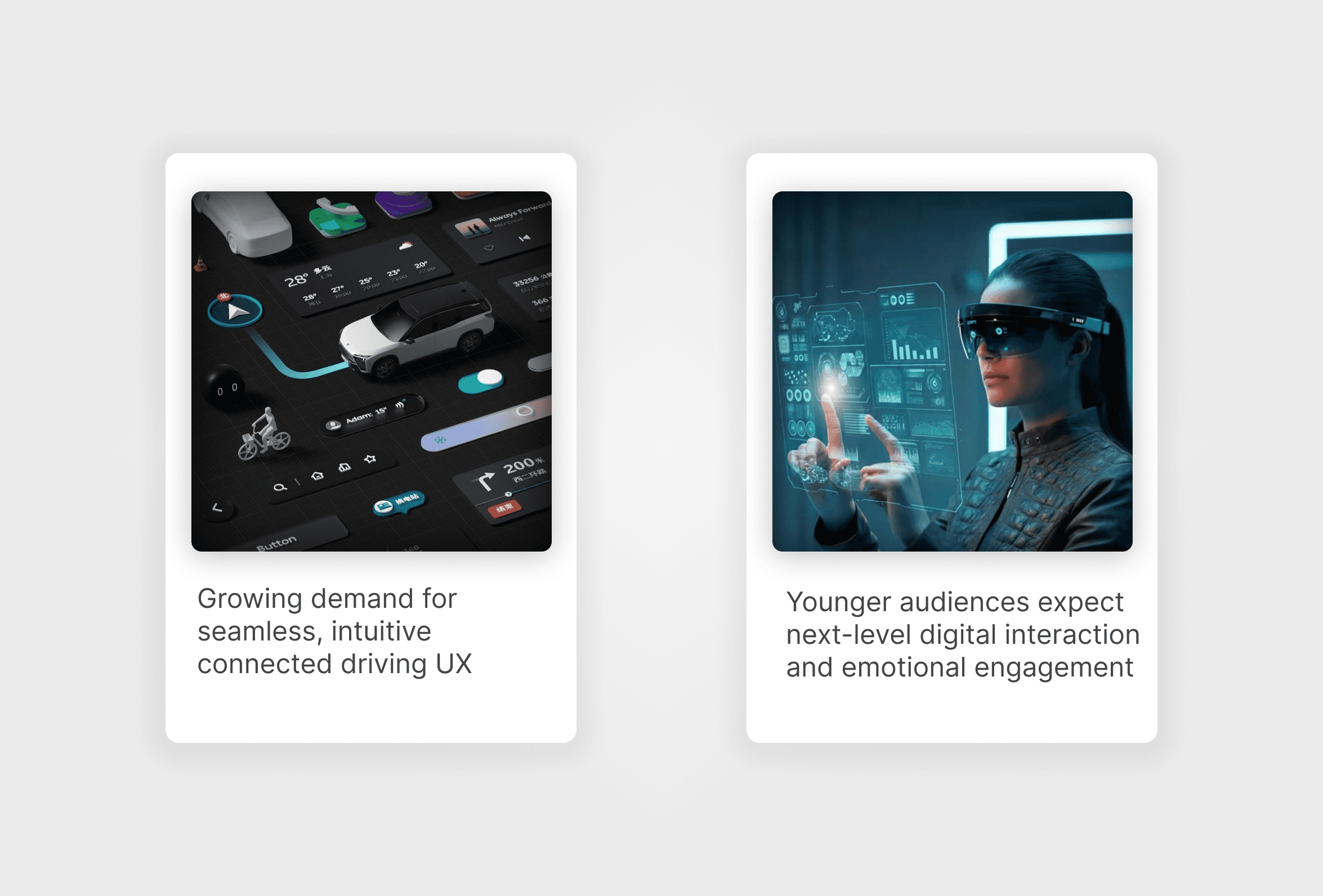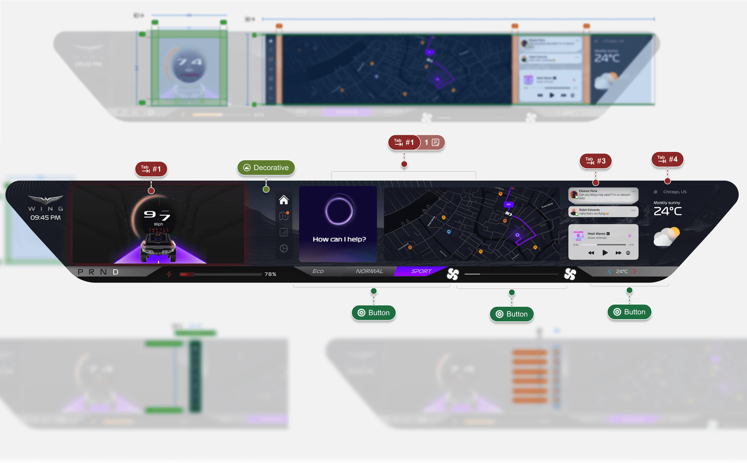 WING HMI Exploration is a concept aimed at designing next-gen Human-Machine Interfaces for premium, intelligent mobility vehicles, specifically targeting younger segments of premium car buyers (age 28-42). The project draws its conceptual inspiration from interplanetary mission control environments.