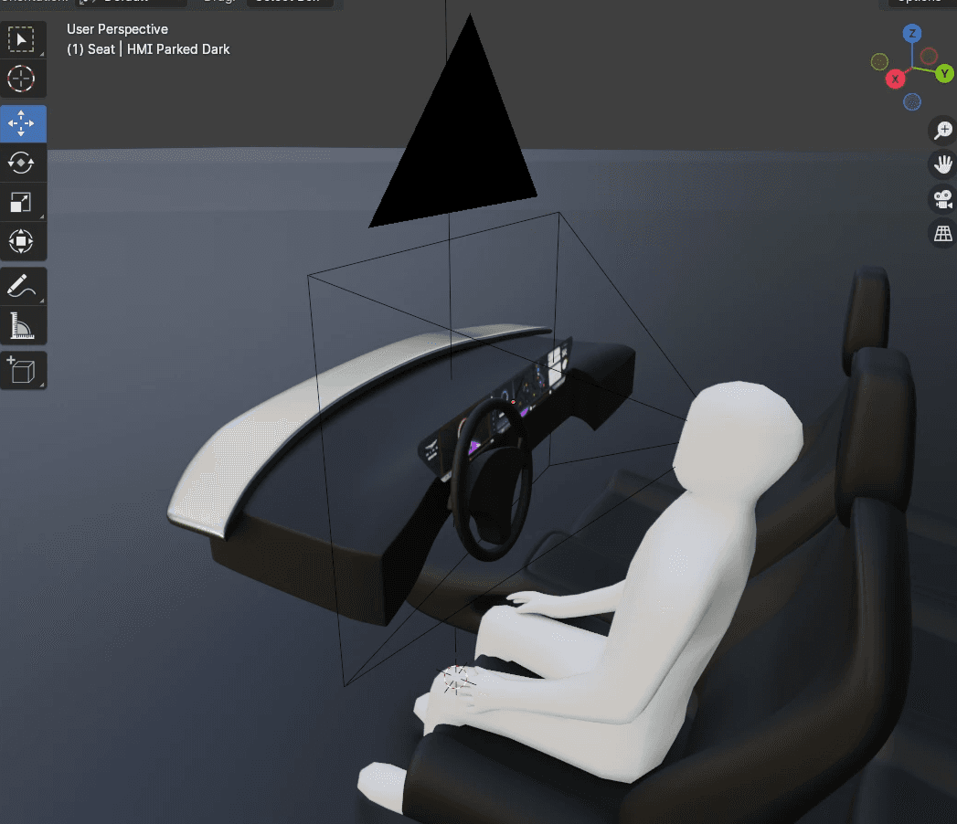 The preliminary results confirm a user-centered design: critical dashboard information is optimally positioned within the driver’s primary line of vision, and secondary peripheral controls are strategically placed to minimize cognitive distraction. The central positioning of the primary display and physical controls ensures maximum reachability and intuitive interaction. This simulation based approach provides essential, pre-road data for final HMI refinement.
