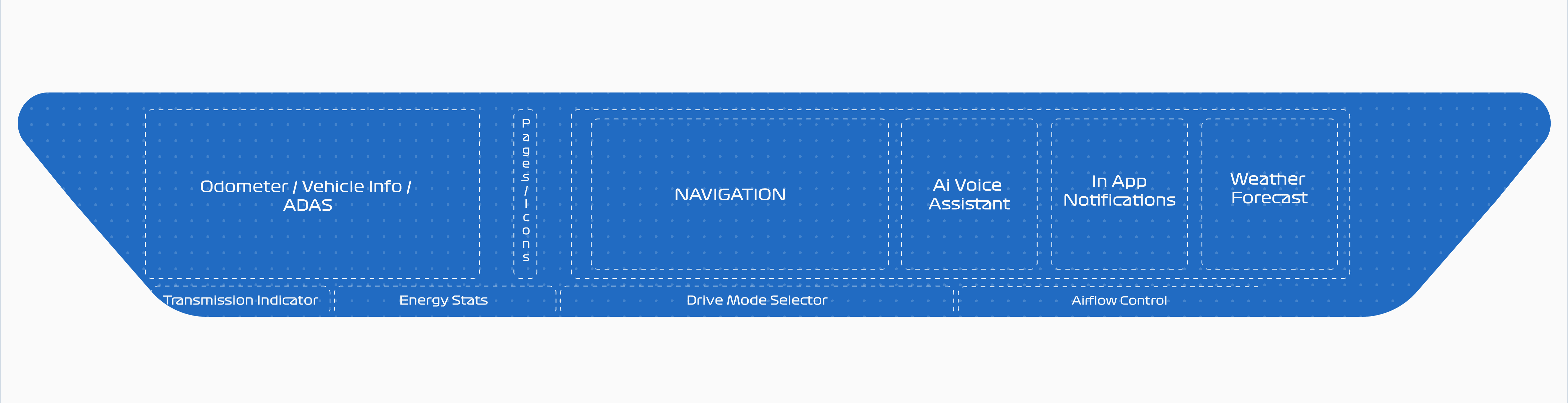 Defined primary use cases (e.g., navigation, media, charging info, ADAS controls)