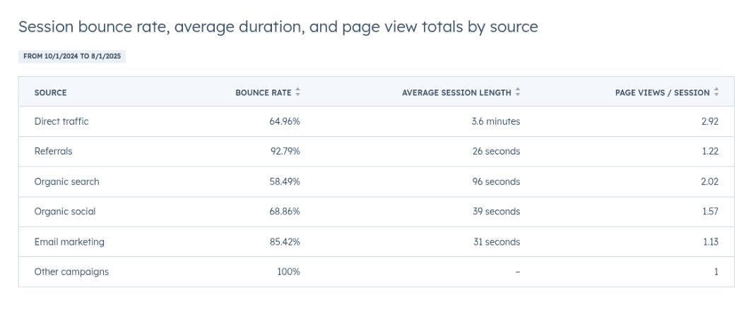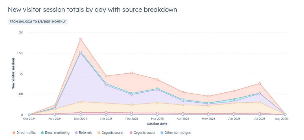 Surpassed 1,500 new monthly sessions, driven by improved SEO and optimized direct engagement channels.